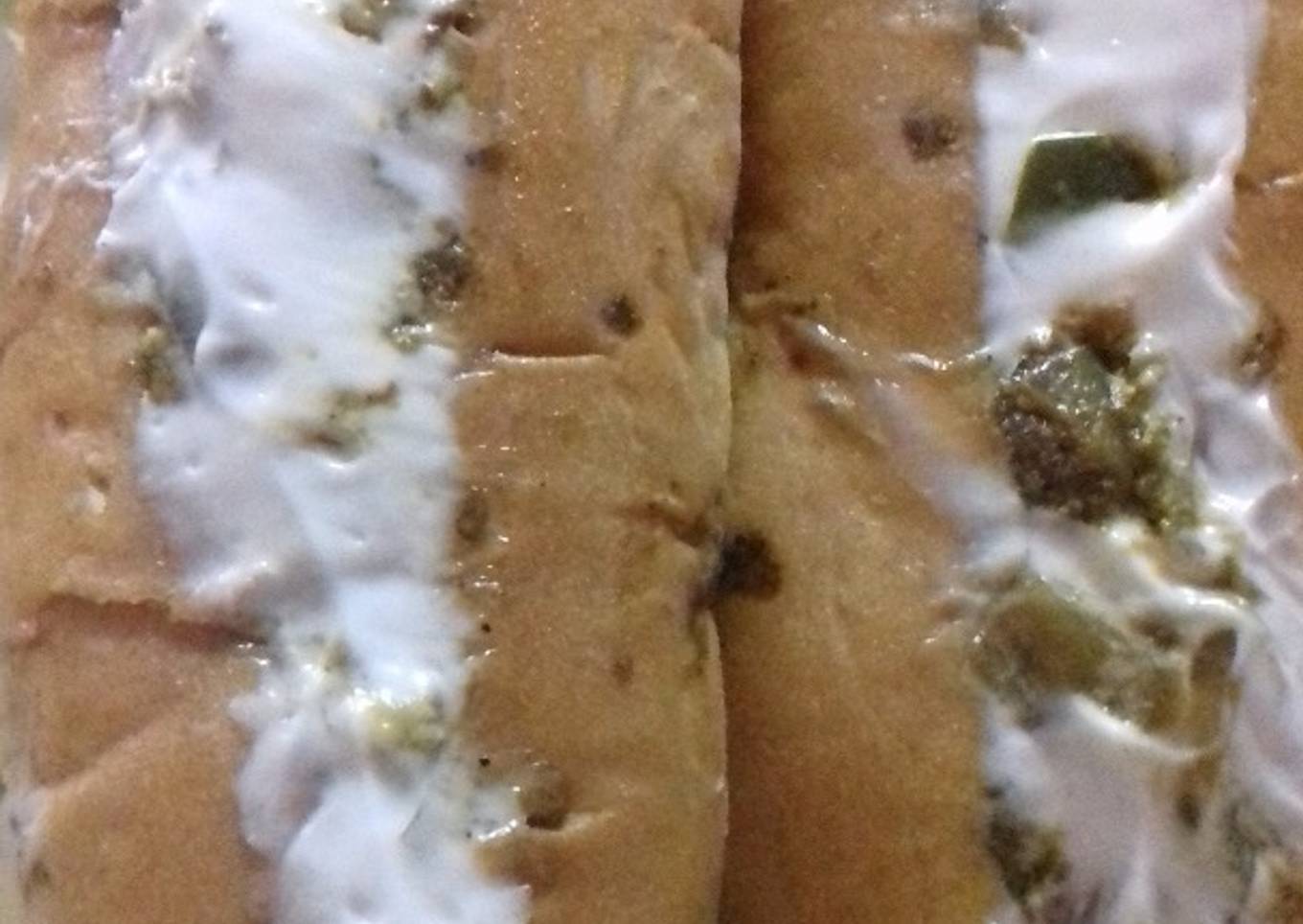 - Divide filling into 4 equal portions and keep aside. Slit each hot dog roll horizontally into 2 brush the inside of each hot dog roll with a little butter and bake in a preheated oven at 180*C for 5 min stuff a portion of the filling on each baked hot dog roll again spread mayonnaise bake in preheated oven at same time.